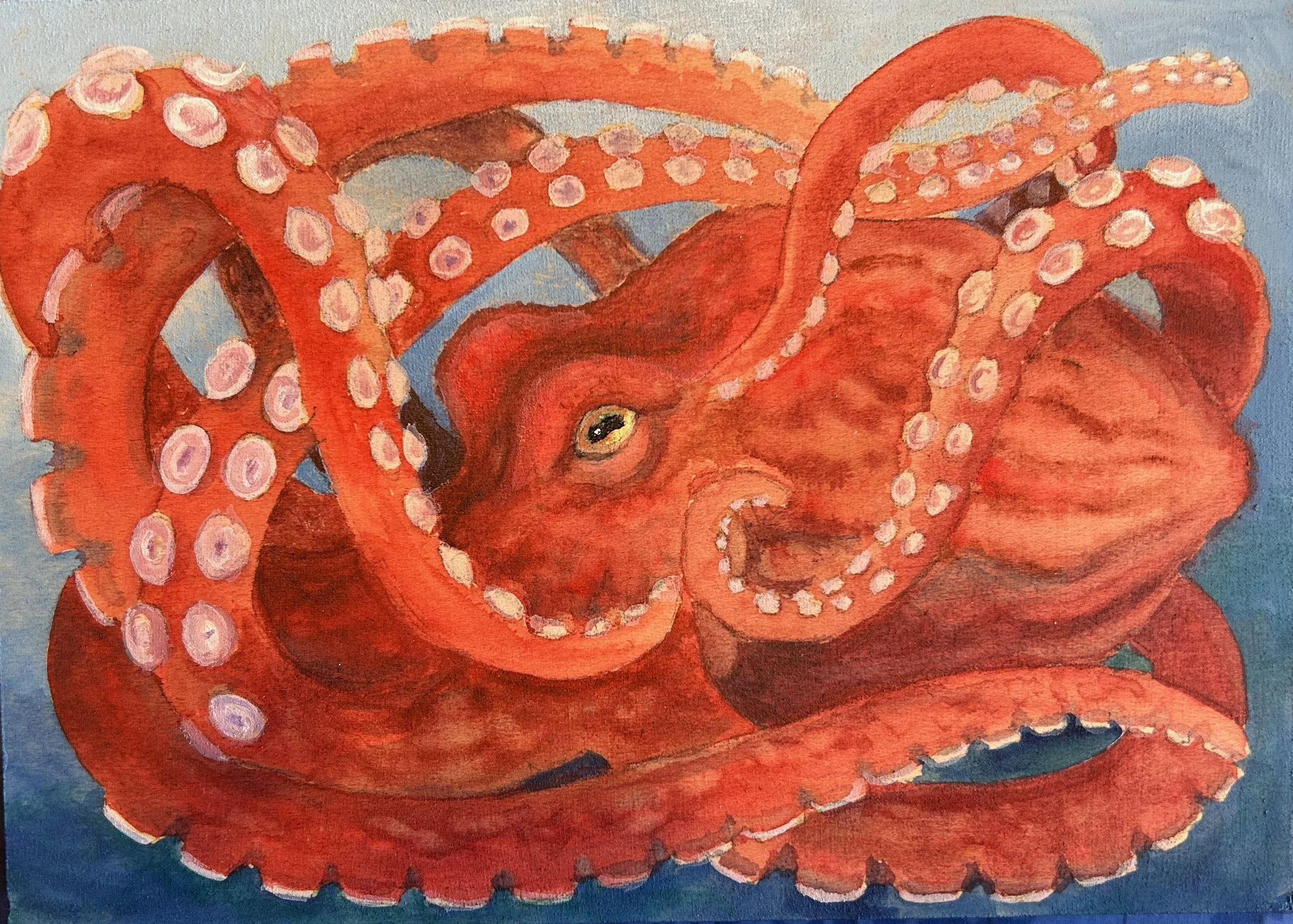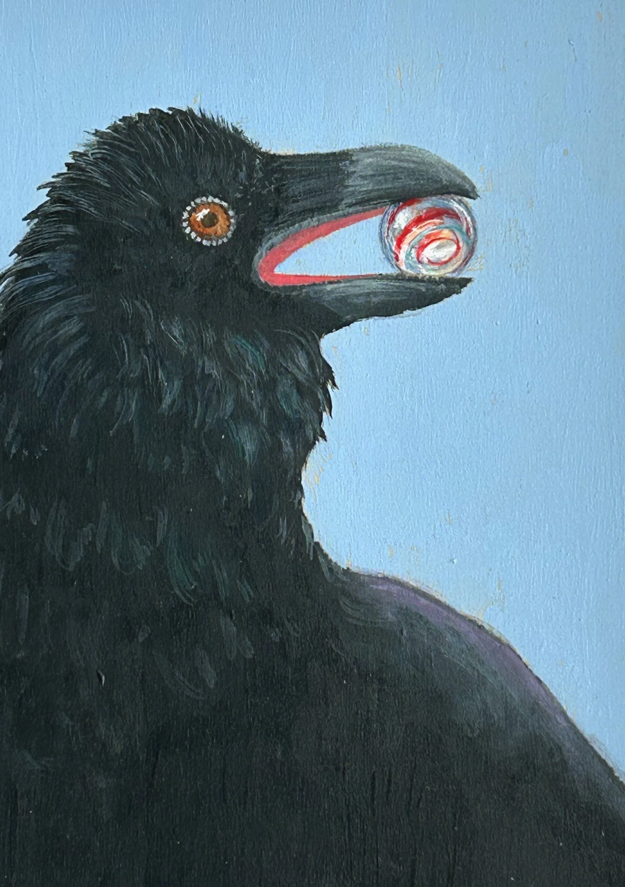 My painting from Animalia was inspired by a couple of grey foxes who frequent our property - entitled “Grey Fox by Moonlight”. My paintings from Woodstock Byrdcliffe include one of a mischievous raven called “Eye on the Prize” and one of a very sentient mollusk entitled “So You Think I’m an Octopus?”